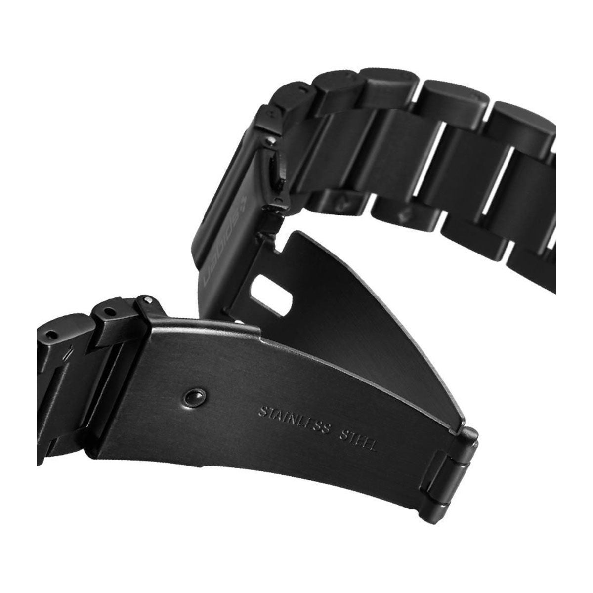 Spigen Modern Fit Band Galaxy Watch 42 mm armband uppdaterar din sportklocka till ett festligt skick. Rostfritt stål av hög kvalitet är det perfekta materialet för armbandet på grund av dess hållbarhet. Det klassiska svarta armbandet är lätt att justera till en lämplig storlek och metalllåset garanterar en snygg och snabb fästmekanism.