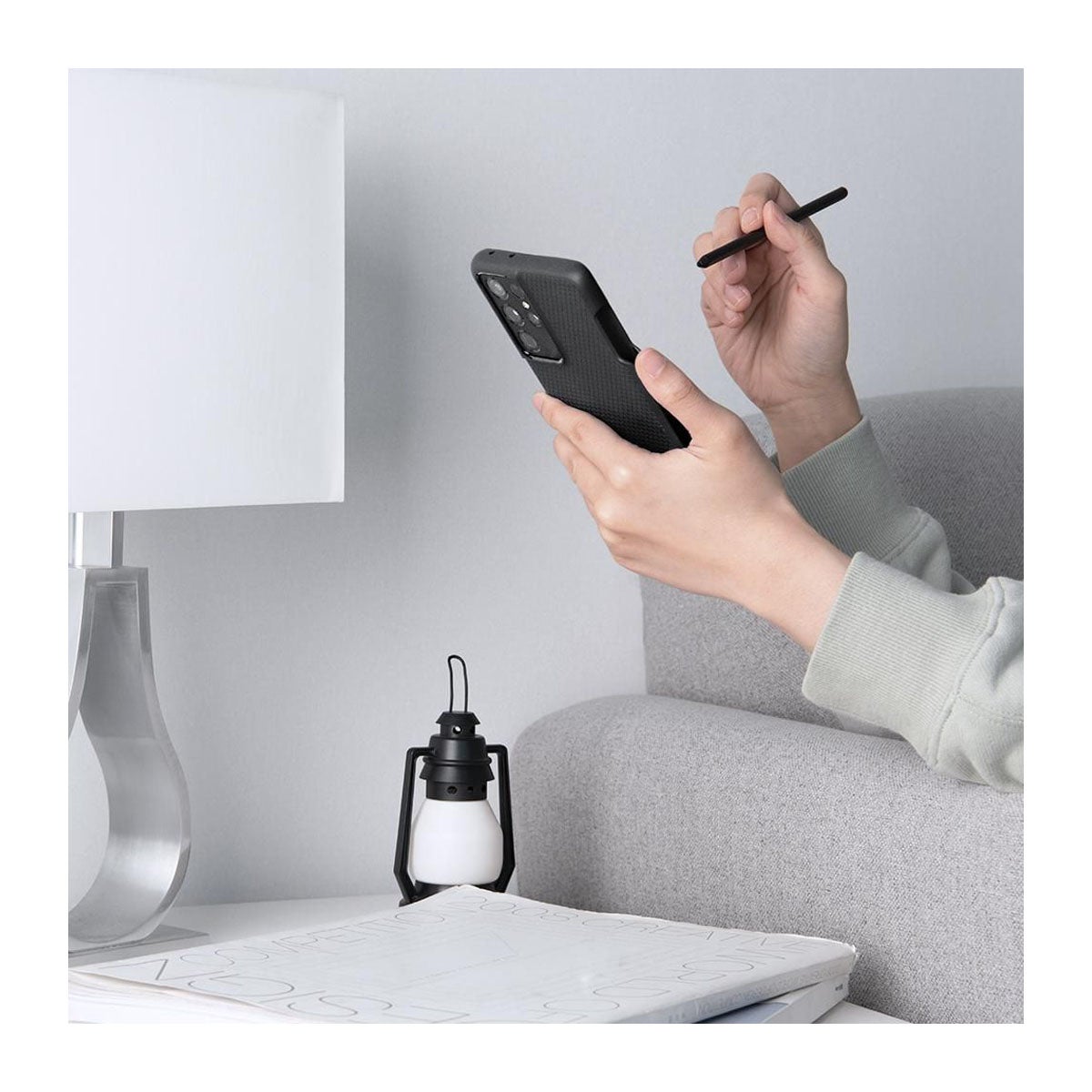 Spigen Liquid Air Galaxy S21 Ultra skal i Svart färg är utformad för att rymmas i fickan och trådlös laddning fungerar problemfritt med skalet på. Se videon nedan för att få en presentation av ett motsvarande Spigen Liquid Air skal!