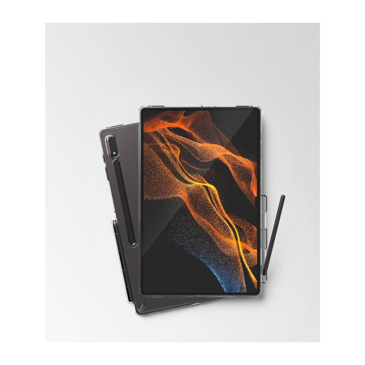 Ringke Fusion Galaxy Tab S8 Ultra skal, Transparent är ett tunt men effektivt skydd för din smarttelefon. Skalet är noggrant designat, alltså kan kameran, knapparna och portarna användas som vanligt med skalet på. Tack vare de hållbara materialen skyddas din enhet mot repor och stötar.