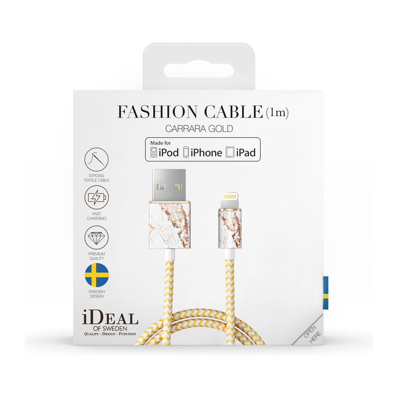 Svenska iDeal of Sweden Lightning – USB-kabel, Carrara Gold erbjuder samtidigt både stil och kvalitet. Den en meter långa laddkabeln är lätt att ha med sig både i fickan och i väskan. Nylonklädda kabeln håller bra i längden. Svensk tidlös design som varar och kompletterar din stil ända in i valet av dina kablar.